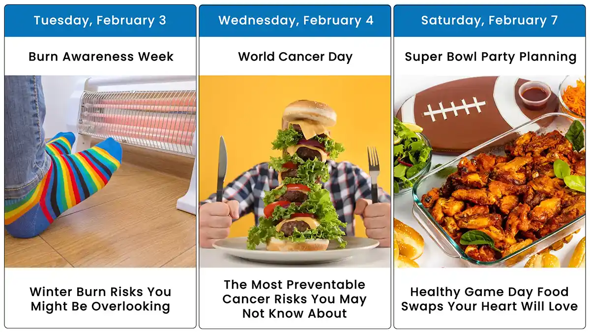Using our February health observances calendar makes it easier for hospitals to plan content and stay consistent across platforms. Educational articles, short social posts, videos and healthy recipes can all be aligned with key awareness dates throughout the month.